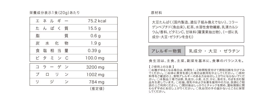 そしてタンパク質の原料となる大豆タンパクには、国内製造の遺伝子組み換えでない高品質な大豆タンパクを使用。