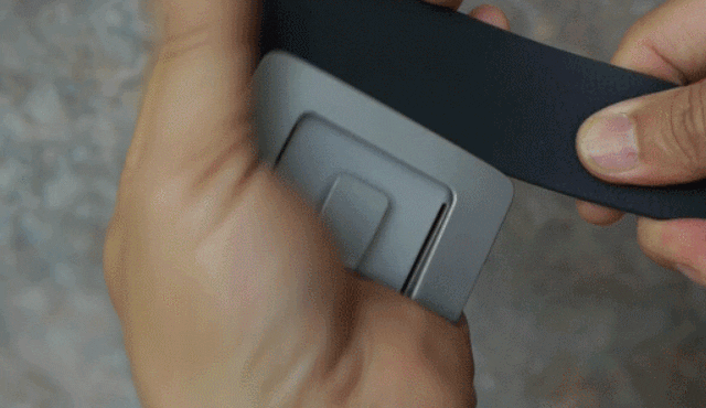 ベルトのエッジに装着し、バックルの裏側にあるスロットにもう片側のベルトを差し込むだけでしっかり固定します。