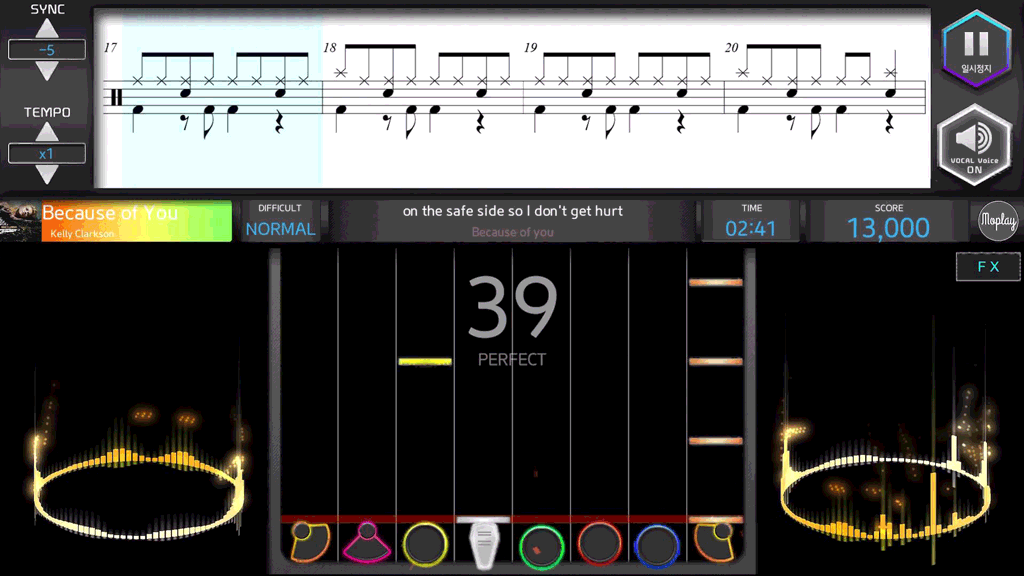 モニターに表示された落ちてくるバーに合わせて、ドラムを叩いたり、ペダルを踏むだけ。 68通りの基礎ビート練習モードもあり、超初心者でも心配なし!難易度も選べるため、慣れてきたらより高度な練習もできレベルに合わせて演奏することができます。