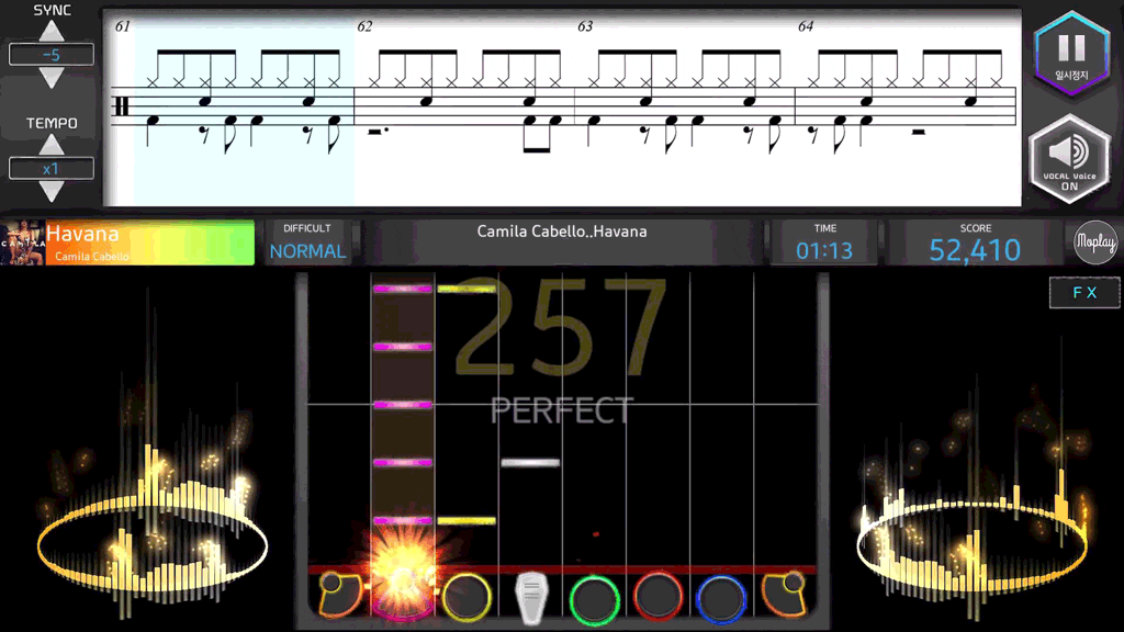 落ちてくるバーのスピードを調節することで、Easy、Normal、Hardなどお好みの難易度を選択することができます。1倍速、2倍速、4倍速、8倍速と、バーのスピードを調節することにより迫力あふれる演奏ができます。HardとOriginalは原曲そのまま。アーティストになりきって、一度チャレンジしてみましょう!