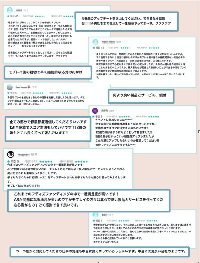モプレイは「モ(韓国語で”すべて”)」を「プレイ(楽器一つで演奏しよう!)」をモットーに韓国で創業し、今年3年目に入った音楽専門スタートアップです。私たちは、楽器を学ぶことは「つまらなくて難しい」という人たちの考えと、心理的に高いハードルを破ってみよう、という考えで集まった、音楽を心から愛するメンバーです。楽器演奏を多くの方々により簡単に楽しんで欲しいという思いから、本プロジェクトを開始しました。日本の皆さまに本製品をお届けできることを心より楽しみにしております。ぜひご支援をお願いいたします。