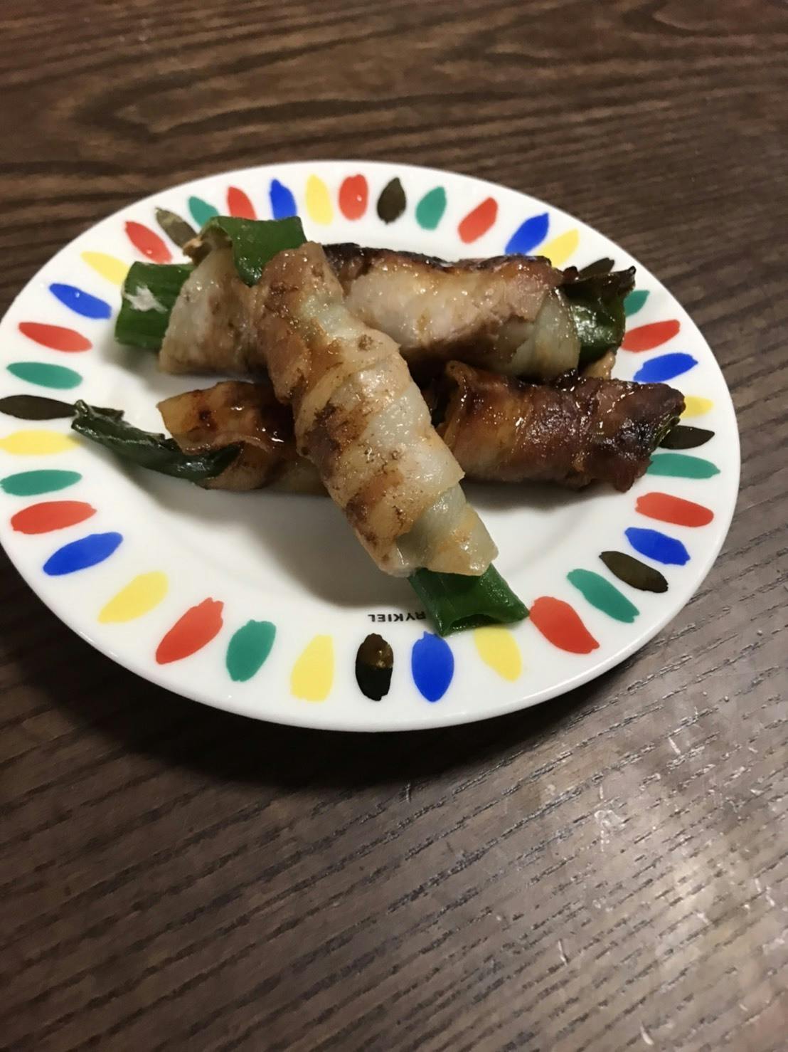 九条葱を15センチ程度にカットし 豚バラスライスを巻きます。
