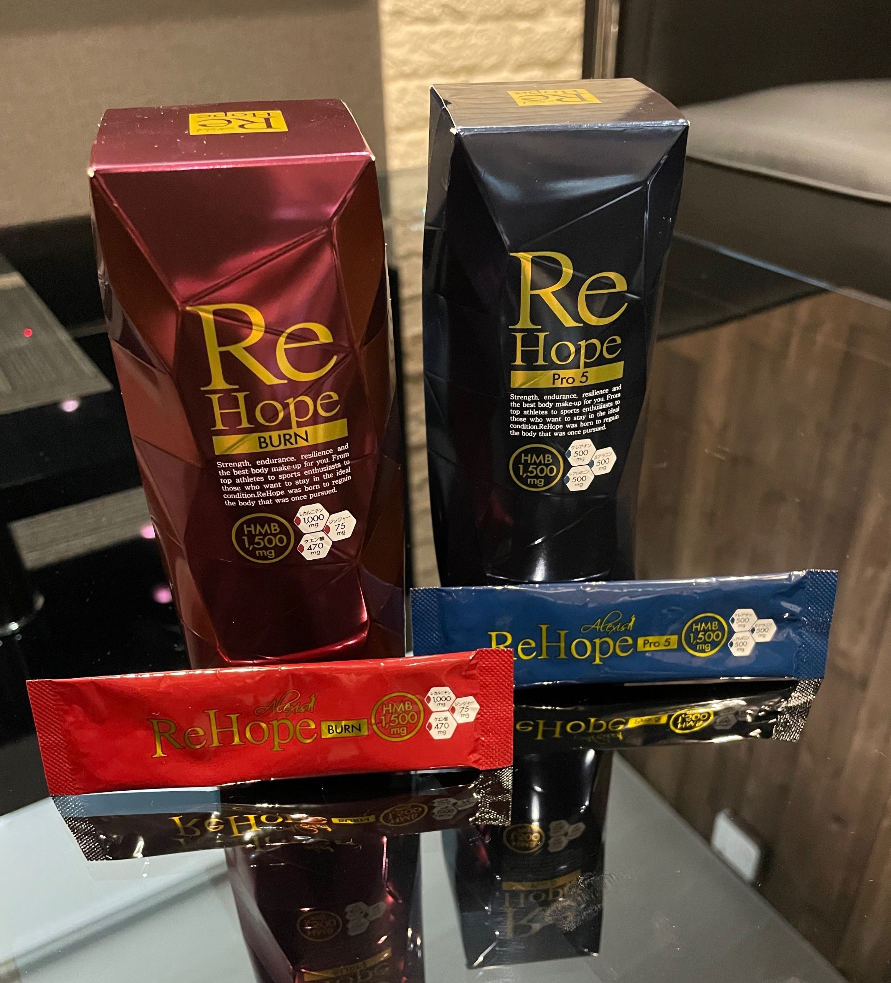 アスリートの皆さんが身体のことを気にせず毎日120%の力を発揮し、より長い選手生命を過ごすためのサプリメントである「ReHope Pro5」。そして身体の悩みを抱えている人のためのサプリメント「ReHope BURN」。この二つの商品をここで発表させていただきます。