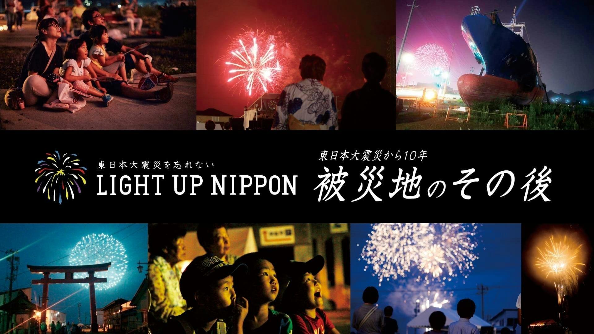 東日本大震災後、日本中に自粛ムードが漂い、街中の灯りが消えた2011年。中止を余儀なくされ、行き場を失った東京湾大華火祭の花火玉が「震災に懸命に立ち向かう人たちをなんとか元気づけたい」という熱い想いとともに、東北沿岸部11ヶ所の各会場に届けられ、月命日である8月11日に『鎮魂』と『復興』の祈りを込めて、夜空に打ち上げられました。同じ日、同じ時刻に、同じ空を見上げ涙した、2011年8月11日。日本中の多くの方々から支援を受け「LIGHT UP NIPPON」は生まれました。