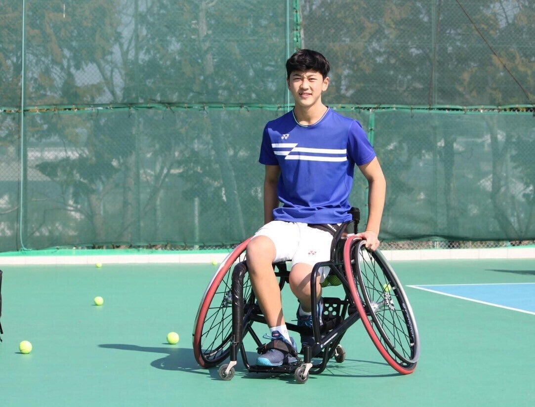 僕は9歳の時、左股関節に骨肉腫がみつかり人工股関節になりました。それまではサッカーをやっていましたが、大好きだったサッカーを諦め、代わりになる競技をということで車いすテニスに転向しました。始めた時から、僕と同じ9歳で車いす生活になった国枝慎吾選手が憧れであり目標です。