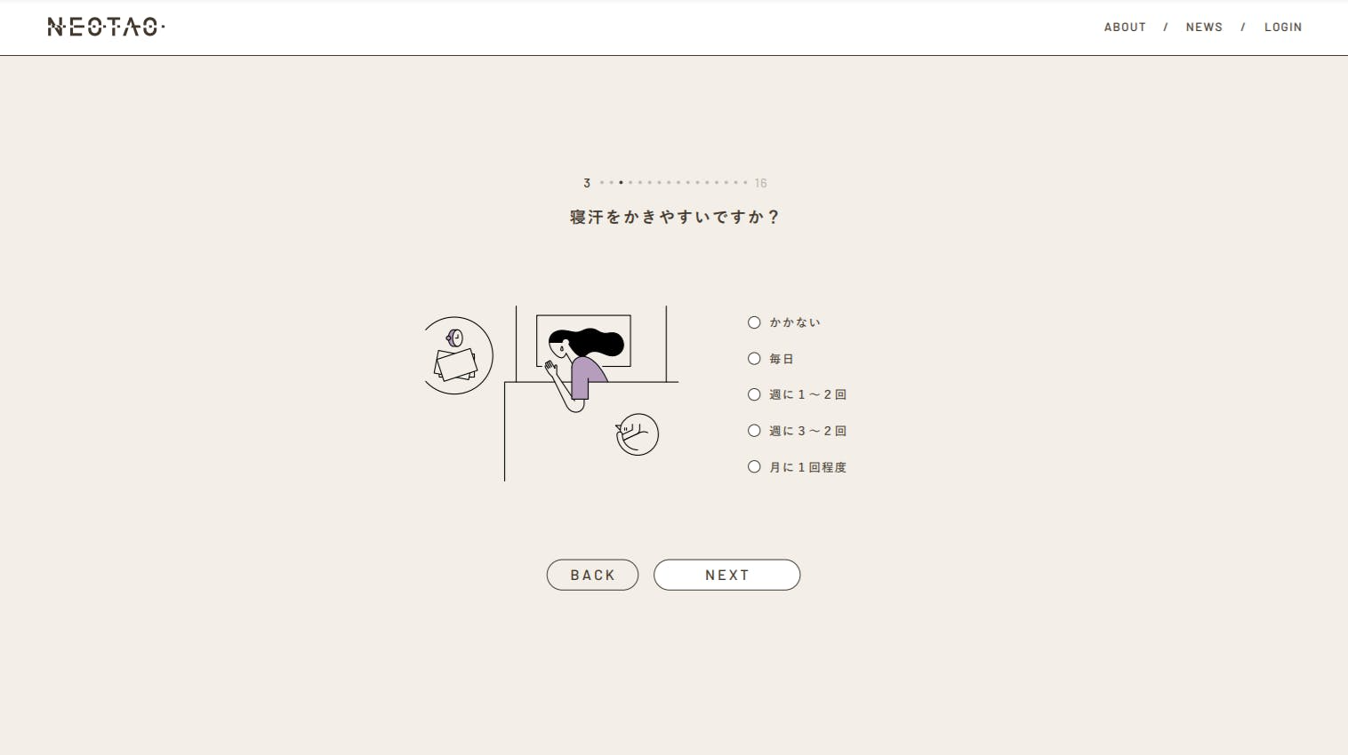 NEOTAOはカラダの調子やお悩みについて3分ほどのオンライン無料診断をもとに自分にあったチョイスができるパーソナライズ型を採用しています。本来なら医師や薬剤師に体調を直接相談し処方してもらうところを、オンラインの非接触式で完結できます。