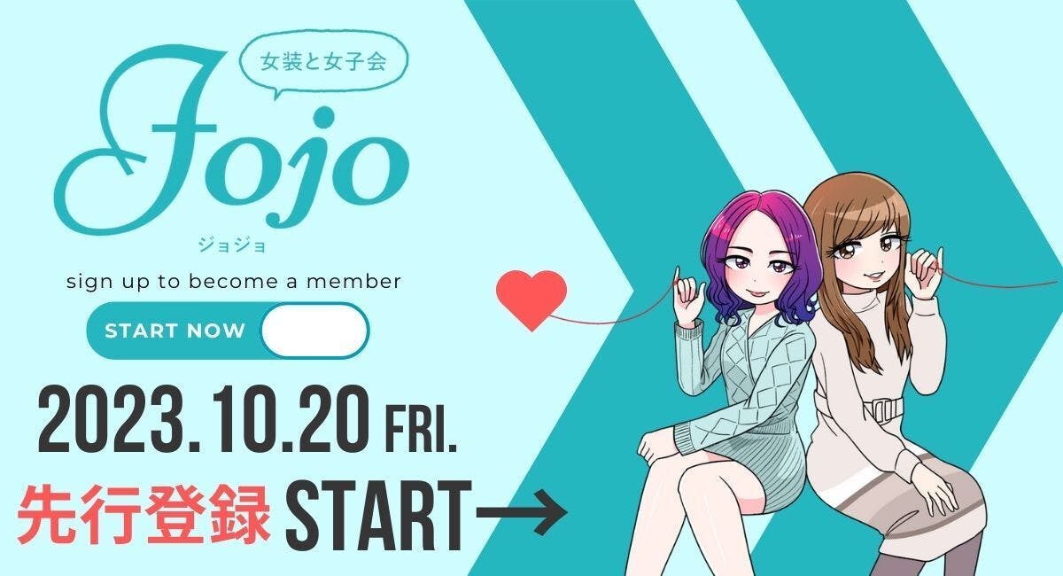 2024/01/04 16:30大変お待たせいたしました。マッチングサイト 女装と女子会「Jojo」が2023年12月8日にリリースされました。Jojoの特徴・会員特典・史上初!女装する男性と女性を繋ぐマッチングサイトです・趣味嗜好を大切にしたいあなたに!お互いを尊重し合うことができる相手との出会いの場を提供します・ここだけの話も盛りだくさん!女装界隈の有名なコラムニストが執筆する会員限定コラムが読めます・プロの手で大変身!Jojo会員は女装サロン studio RAAR 利用料割引があります・お出かけ前にヘアセット!Jojo女性会員はヘアセットサロン ジャルダンドフルー 利用料割引がありますJojoの利用方法・アカウント登録・本人確認書類の提出・(男性のみ)プラン選択、クレジットカードの登録・本人確認書類の確認を運営側で行います・本人確認完了後、Jojoの利用が可能となりま注)本人確認に数時間〜数日かかる場合がございます。本人確認完了までお時間をいただきますこと、ご了承ください。Jojoの利用料金男性会員:2,800円/月 7,800円/3ヶ月 15,000円/6ヶ月女性会員:無料お客様に快適にご利用をいただけるように引き続き改善を図ってまいりますので、ご愛顧を賜りますようお願い申し上げます。登録はこちらからプレスリリースはこちらからhttps://www.value-press.com/pressrelease/329444 もっと見る