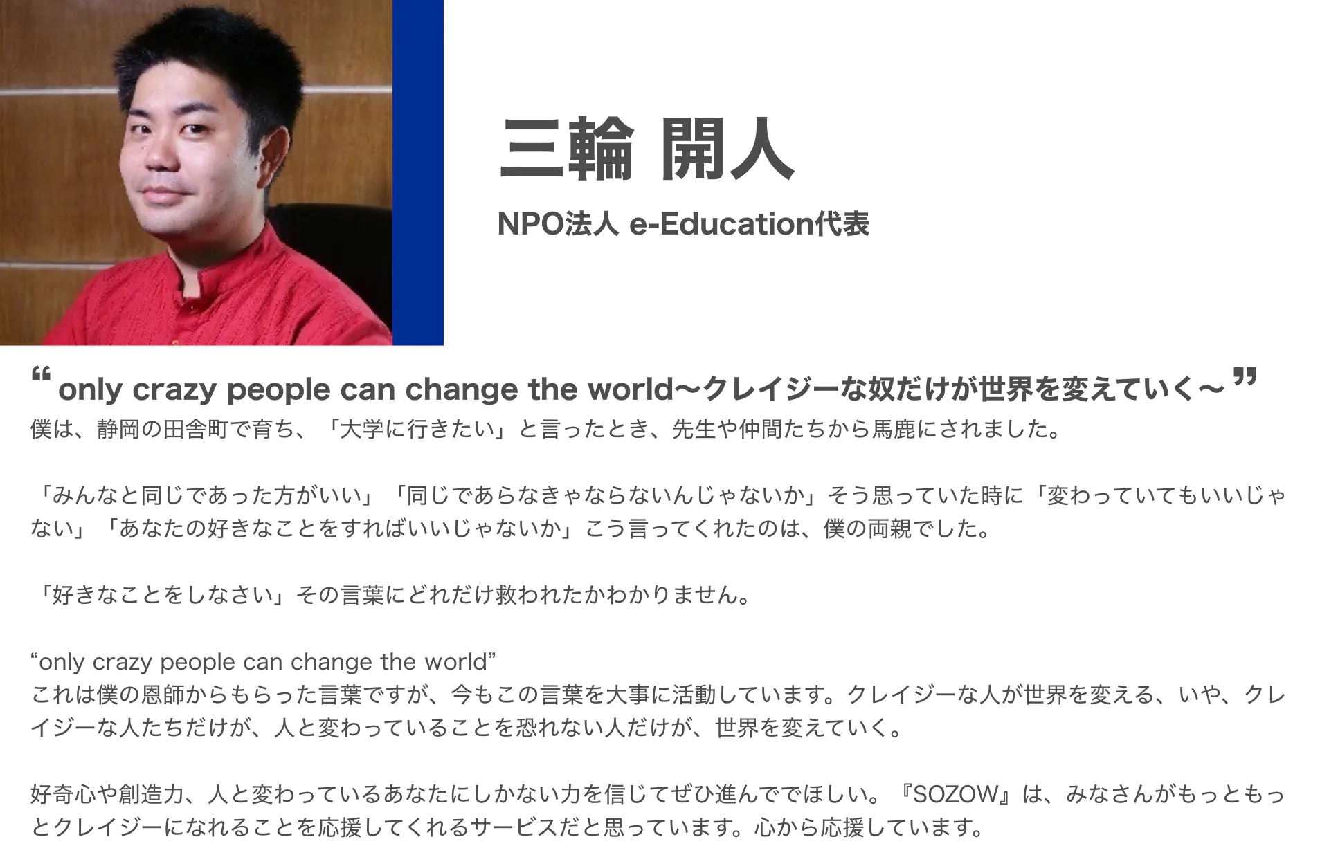 この、原体験に基づく確信が、私に強い使命感をもたらしました。