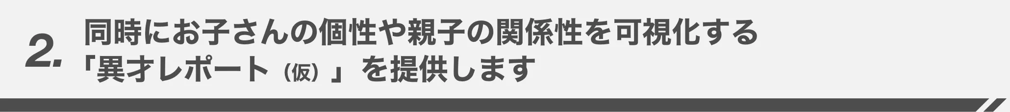「SOZOW」に加え、お子さんの個性や親子の関係性を可視化するサービス「異才レポート(仮)」を開発します。