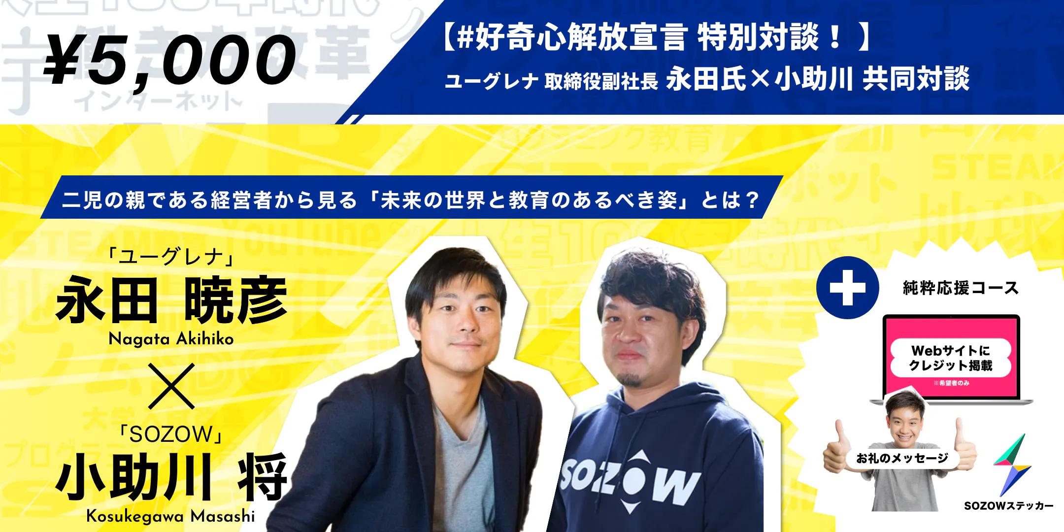 二児の父親である両名が、経営者という経験や知見も交えながら、「ビジネスや世界の未来展望、それに向けた教育・子育てはどうすべきか」をテーマにディスカッションします!必見です!