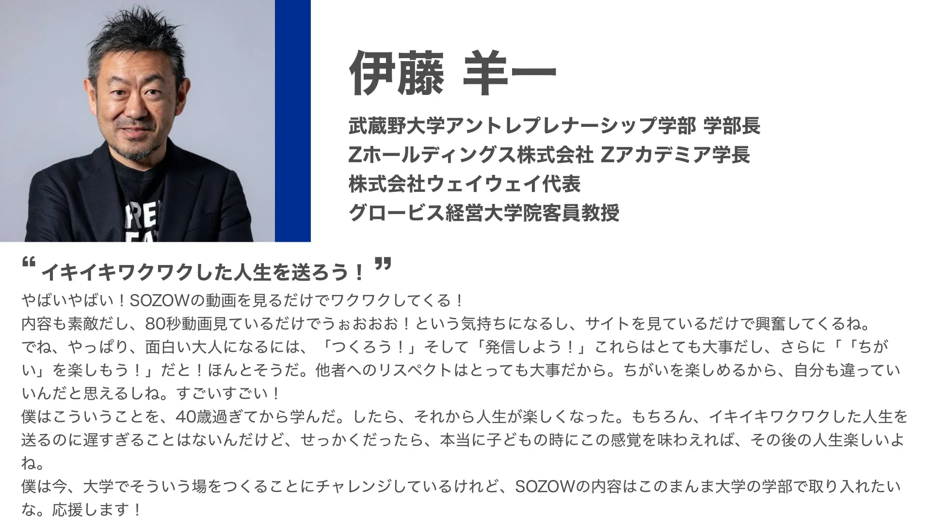 すでに様々な実績のある著名な方々ですが、SOZOWの「すべての子どもたちが『自分らしく』生きられる社会をつくる」というビジョンに共感し、これからSOZOWを発展させることに協力したいとお話をくださいました。