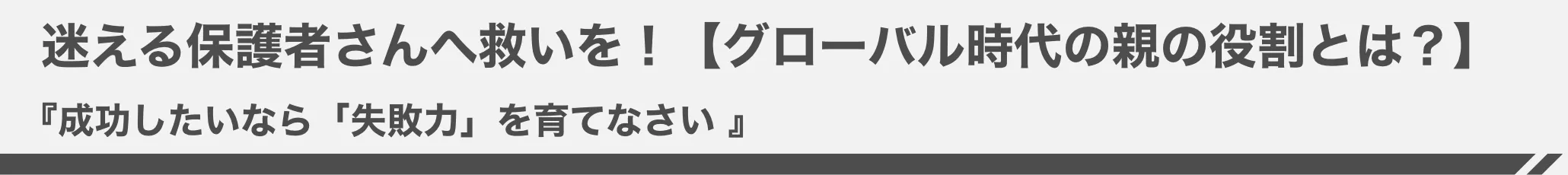 「新時代の教育のあり方」や「これからの子育てに求められるもの」について、「失敗力」と「好奇心」をキーワードに、多くの親子を見てきた第一人者の二人が経験や知見から語り尽くしておりますので、こちらからぜひご覧ください。