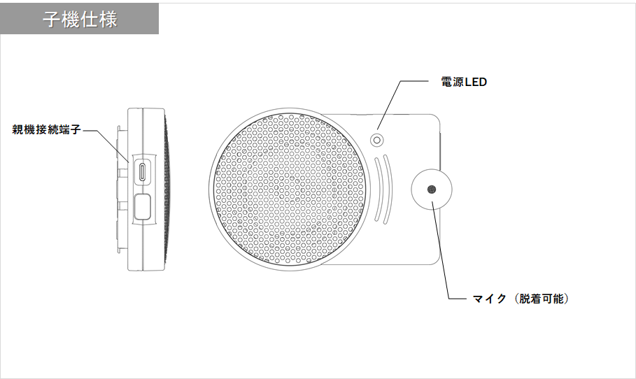 なんらかの事情により親機と子機をパーティションを挟んで取り付けられない場合には、マイクだけをパーティションに取り付けて、本体は机の上に置いて使用することも可能です。