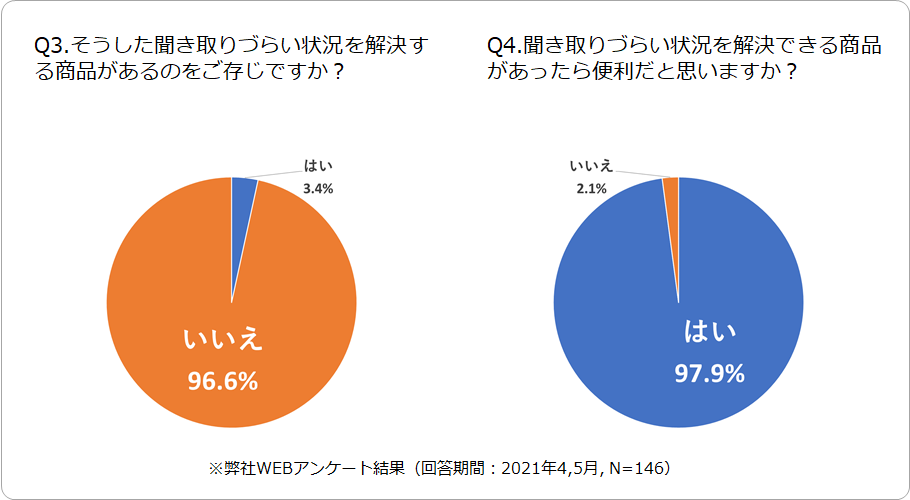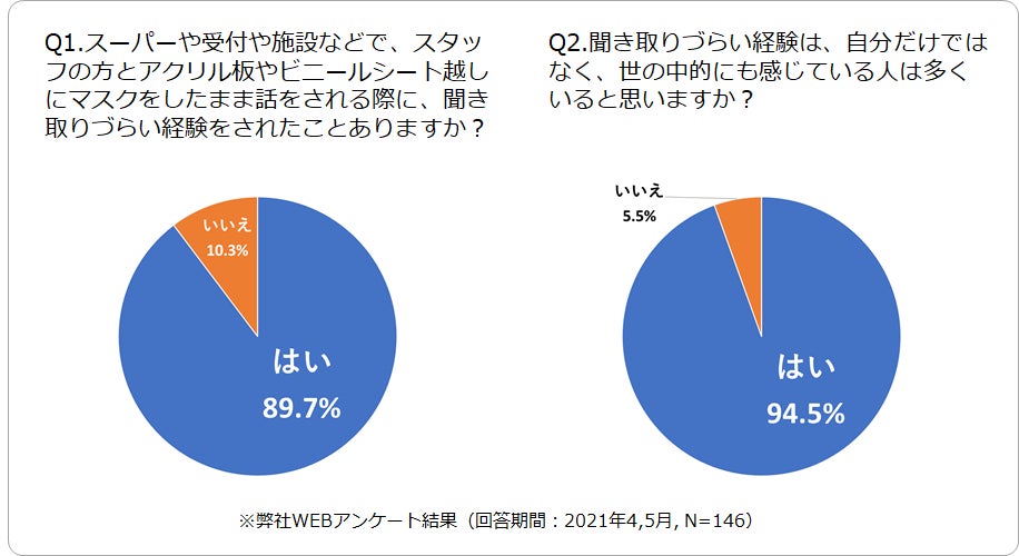 実際にどれくらいの人たちが声が「聞き取りづらい」と感じているのでしょうか? アンケート調査をした結果、実に9割近くの人々が「聞き取りづらい」と感じており、社会課題といってもよい状況にあります。