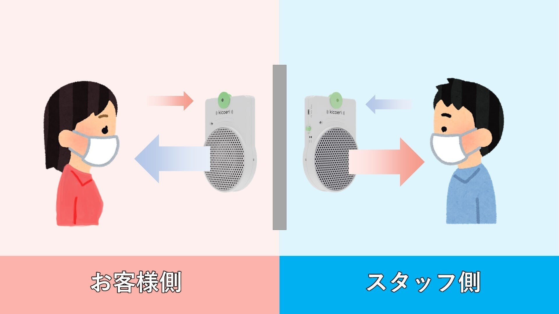 基本的な仕組みはシンプルです。パーティションにマイクとスピーカーを張り付けて、お客様側のマイクで捉えた音声をスタッフ側のスピーカーから鳴らし、スタッフ側のマイクで捉えた音声をお客様側のスピーカーから鳴らす、ただそれだけです。