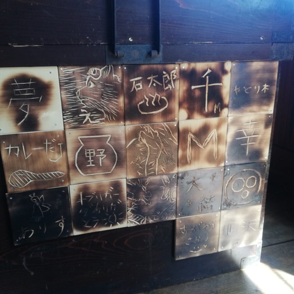 2021/04/23 18:04リターンの一部にもなっている店内記名はこんな感じです。これは先週のイベントで、参加者さんたちにそれぞれ彫っていただいたもの。リターンについては、記名したいご希望のお名前やニックネームをご連絡いただき、私たちで代わりに掘って貼り付けさせていただく予定です。写真は長持(昔の衣装ケース)をリメイクした椅子に張り付けたもの。なかなかいい感じですね! もっと見る