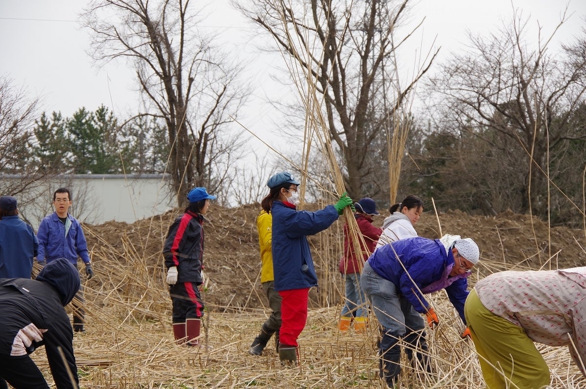 茅場が地域からなくなっている中、幸いなことに地元企業の敷地内に自生している大量のカヤを刈らせていいただいています。「佐藤家を未来に残したい」という人たちがお金を出すだけでなく、みんなで一緒に汗をかいて材料を集めている。これはすごいことだと思います。