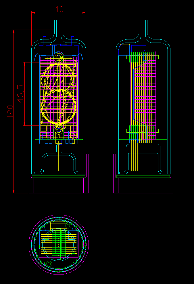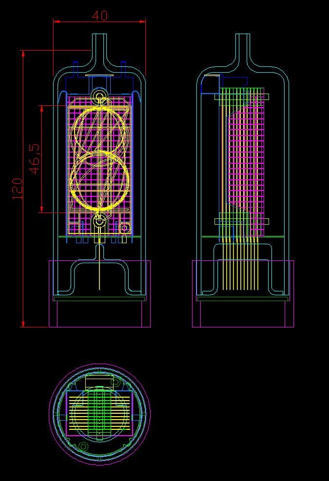 現在試作しているニキシー管はガラス管の直径が40mmで高さは約120mmとなります。