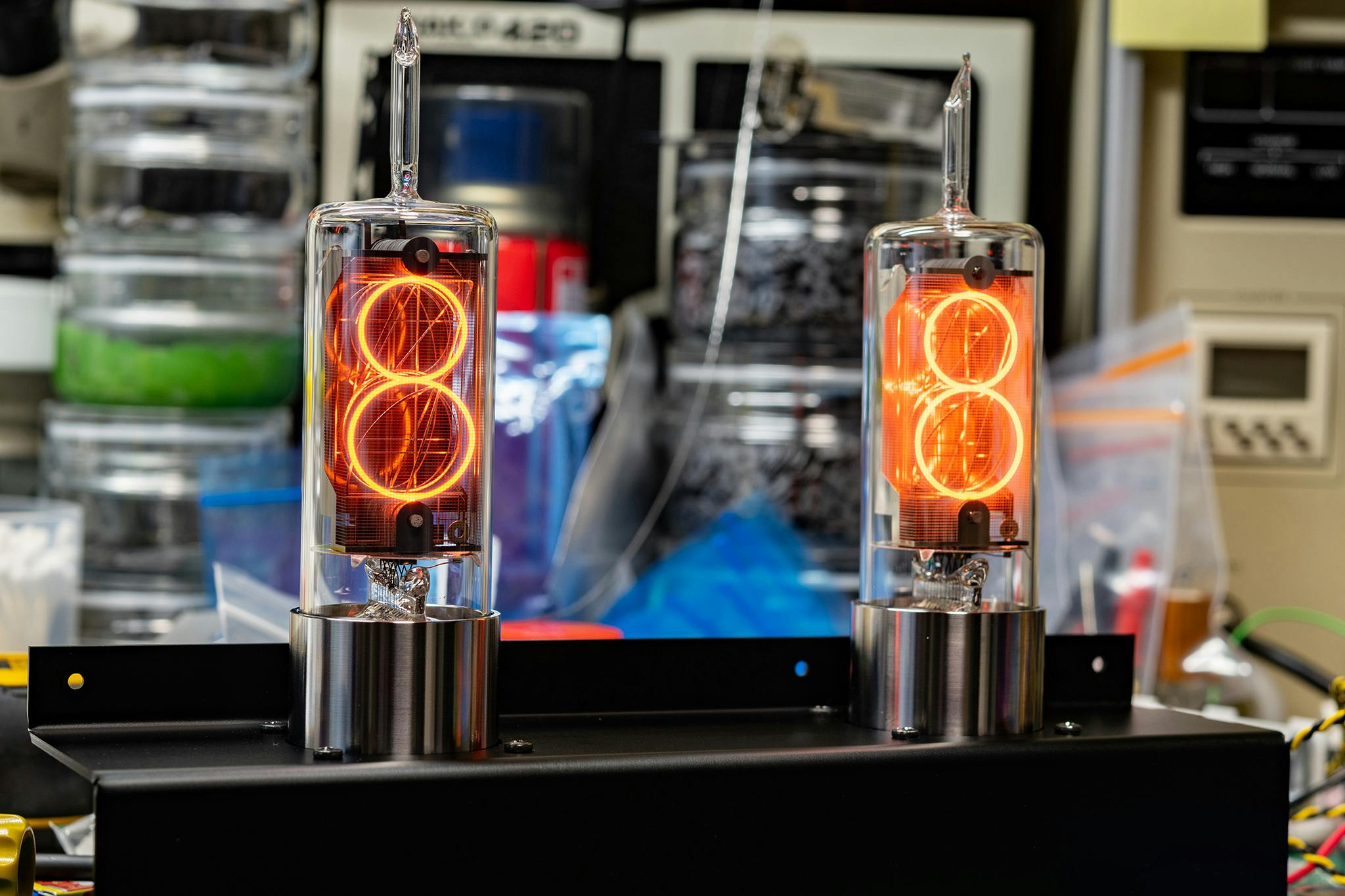 開発を始めてから8年間、様々な困難を乗り越えながらついに実用化一歩手前の段階まで到達しました。この先は量産に必要な条件を見極めるため数多くのサンプル品を作り評価したり、精度を上げるための機材を調達するといった活動を予定しています。支援者のみなさまには、数十年の時を経て復活したニキシー管の輝きを眺めながら、長期間の性能評価にご協力いただけますと幸いです。