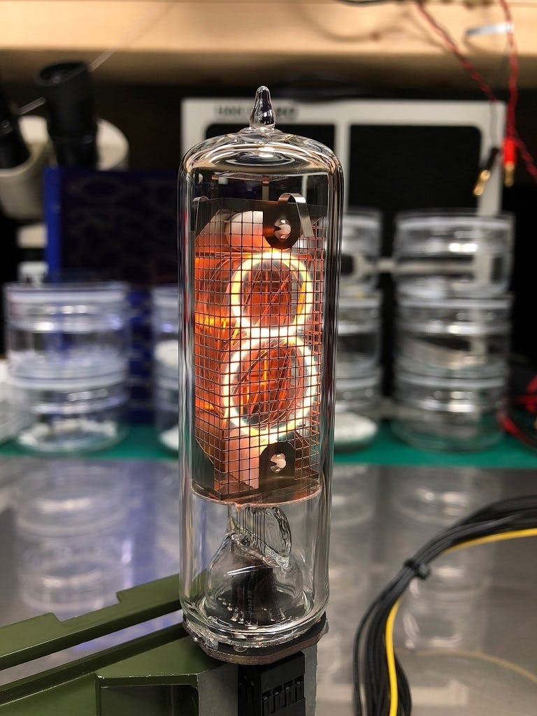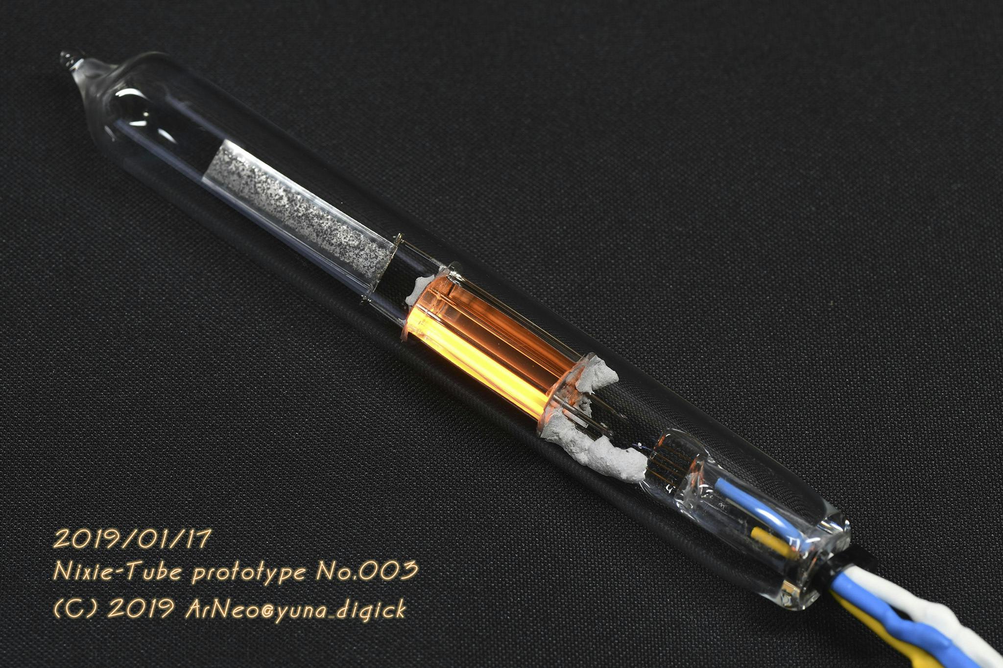 全ての数字を収めたニキシー管の形をした初めての試作に成功しました。