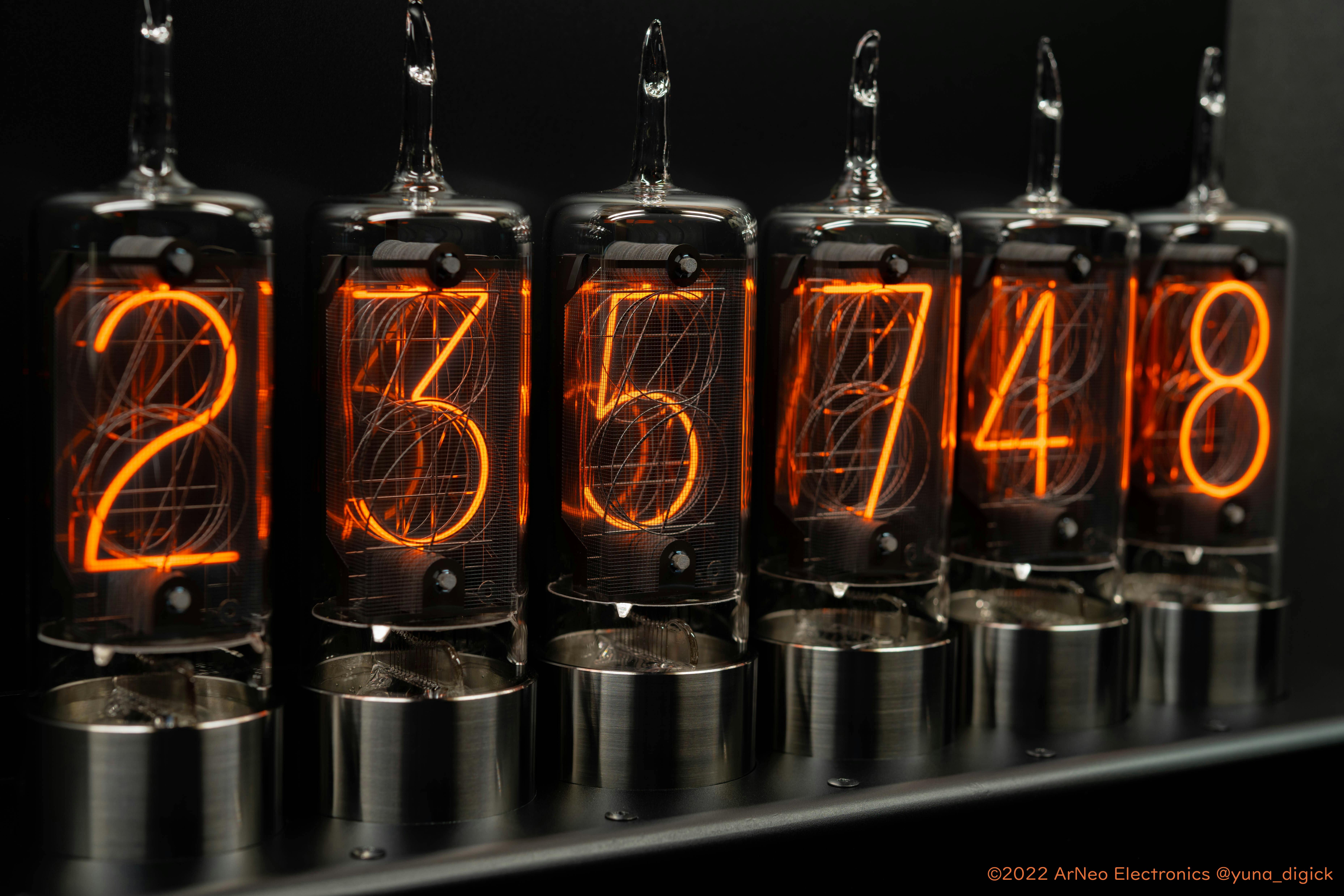 近年、ニキシー管の美しさに気がついたメイカー諸氏の手によって時計などの生活家電に利用されたり創作物の演出などに使われることで目にしたことがある方も多いと思います。しかし、この部品は1980年代に国内すべての工場が製造を終了しています。LEDや液晶パネル、蛍光表示管といった新しい技術の台頭によって需要がなくなってしまったことが主な理由でした。そしてこの数十年で、ニキシー管の製法もほとんど失われてしまいました。すでに製造が終了していることもあって年々流通量は減っており、残された在庫を取り合うかたちで価格は高騰する一途です。このままではニキシー管というものはいずれは姿を消し、歴史の中だけで語られる存在になるかもしれません。