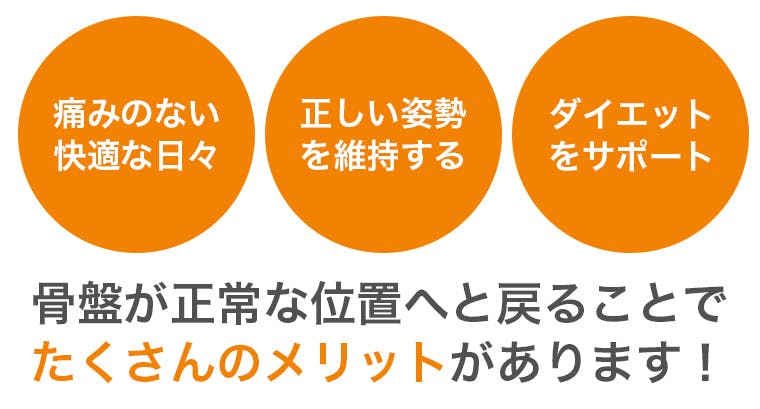 骨盤を後ろに引っ張り固定することで、骨盤を正常な位置へと戻してくれる効果があります。