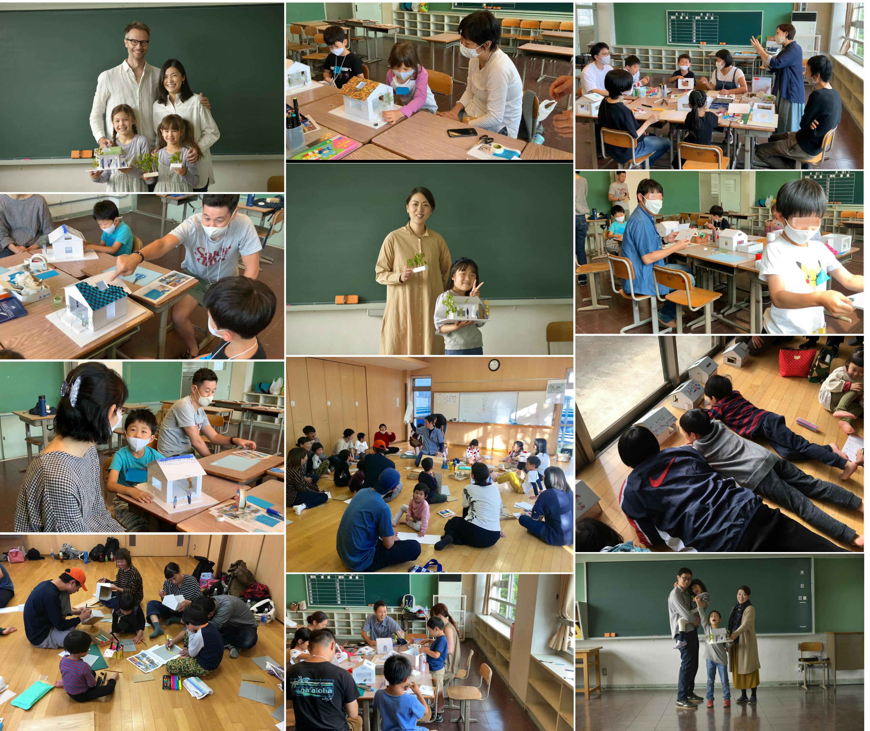 2021/09/01 13:118/28は「木とこどものくらし研究所」を主宰する家具デザイナー 上原理恵さんとコラボ・ワークショップを開催しました。いつものワークショップの中で、さらに家具の”コツ”をつくりながら学ぶという特別企画です。↓これがワークショップで制作するテーブルです。家づくりキットに合わせて、25分の1でデザインして頂きました。1mmの木板と、竹ひごがベース。↓椅子は子どもには難易度高く、今回は上原さんで事前に制作して頂きました。30個以上も!上原さんらしいおおらかで可愛いデザイン、始まる前からワクワクです!”テーブルは天板と足だけじゃなくて、「まくいた」や「すみき」を使って強くするんだよー”と説明してもらって、つくり始める子どもたち。細かな作業で、老眼入った私たちには辛いですが笑、子供たちは天板に足→幕板→隅木と、黙々と上手に組み上げて行きます。今回はプライベートワークショップということもあり、「太陽の動きを知る」「庭の木の持つ力を知る」を混ぜて開催。・太陽の位置・樹木の配置・家具の配置多方面を考え、家の外も中も、自分なりの気持ちの良い空間づくりをしてくれました。実際の設計士さんみたいですね。小学2-5年生の、ものづくり大好きな男の子・女の子。4時間集中して、しっかり楽しんでくれました。本日も素敵な親御さん・子どもたちにたくさん出会えました。全員帰ってからも、家づくりキットで遊んでくれたようです。しみじみ、嬉しいなあ・・。これもキットの型枠があったからこそ。皆さんに感謝です。 もっと見る