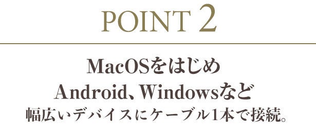 また、使いたいデジタルデバイスとケーブルを接続するだけで自動的に各OSと同調するので、細かなセッティングをする必要がありません。