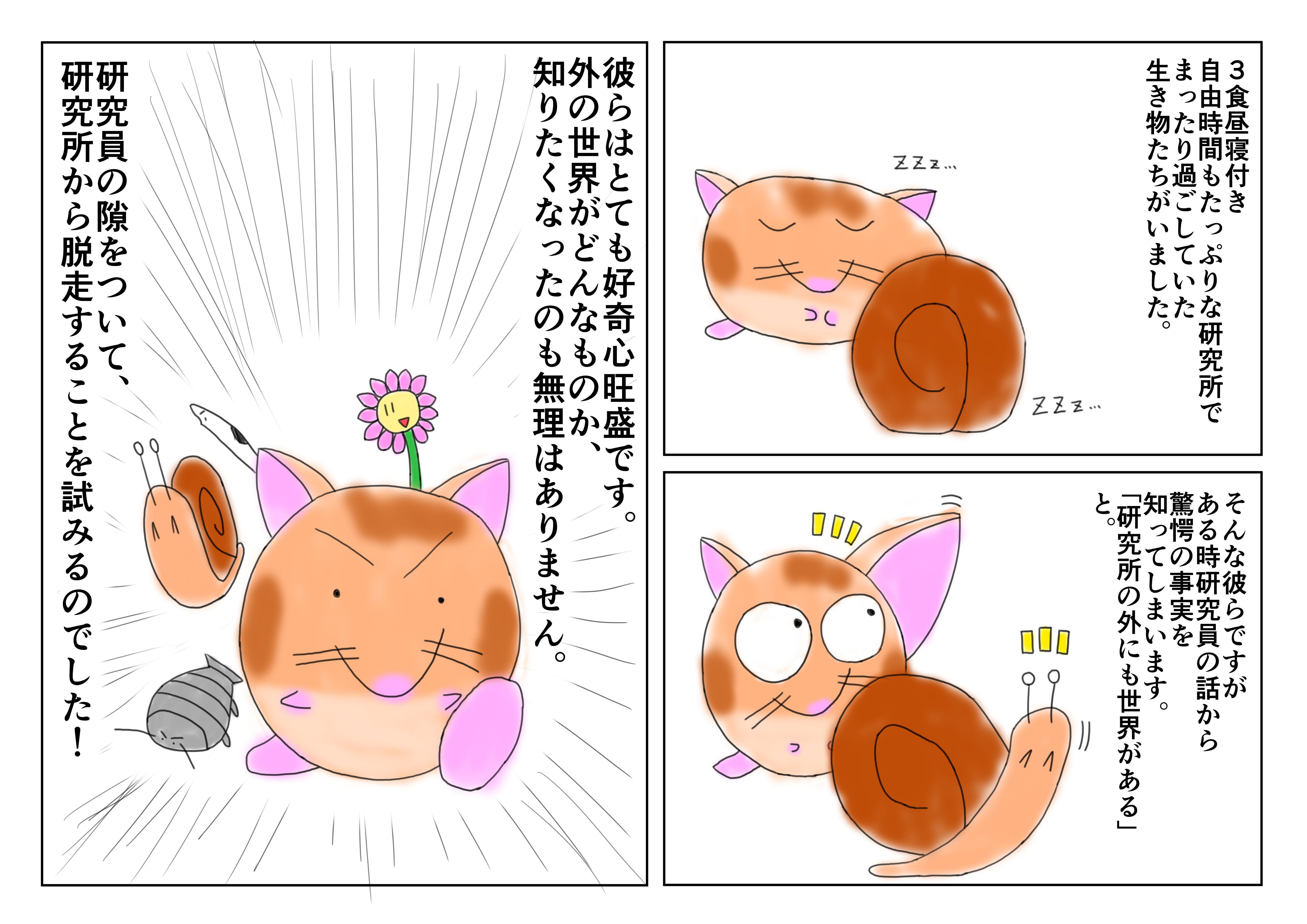とても足が速い珍しいカタツムリのため、研究所で保護されています。時速5km/hくらいで動けます。