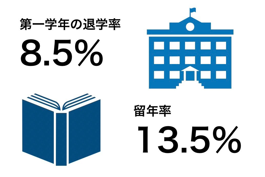 しかし、小学第一学年の退学率は8.5%、留年率は13.5%と高い数字になっています。