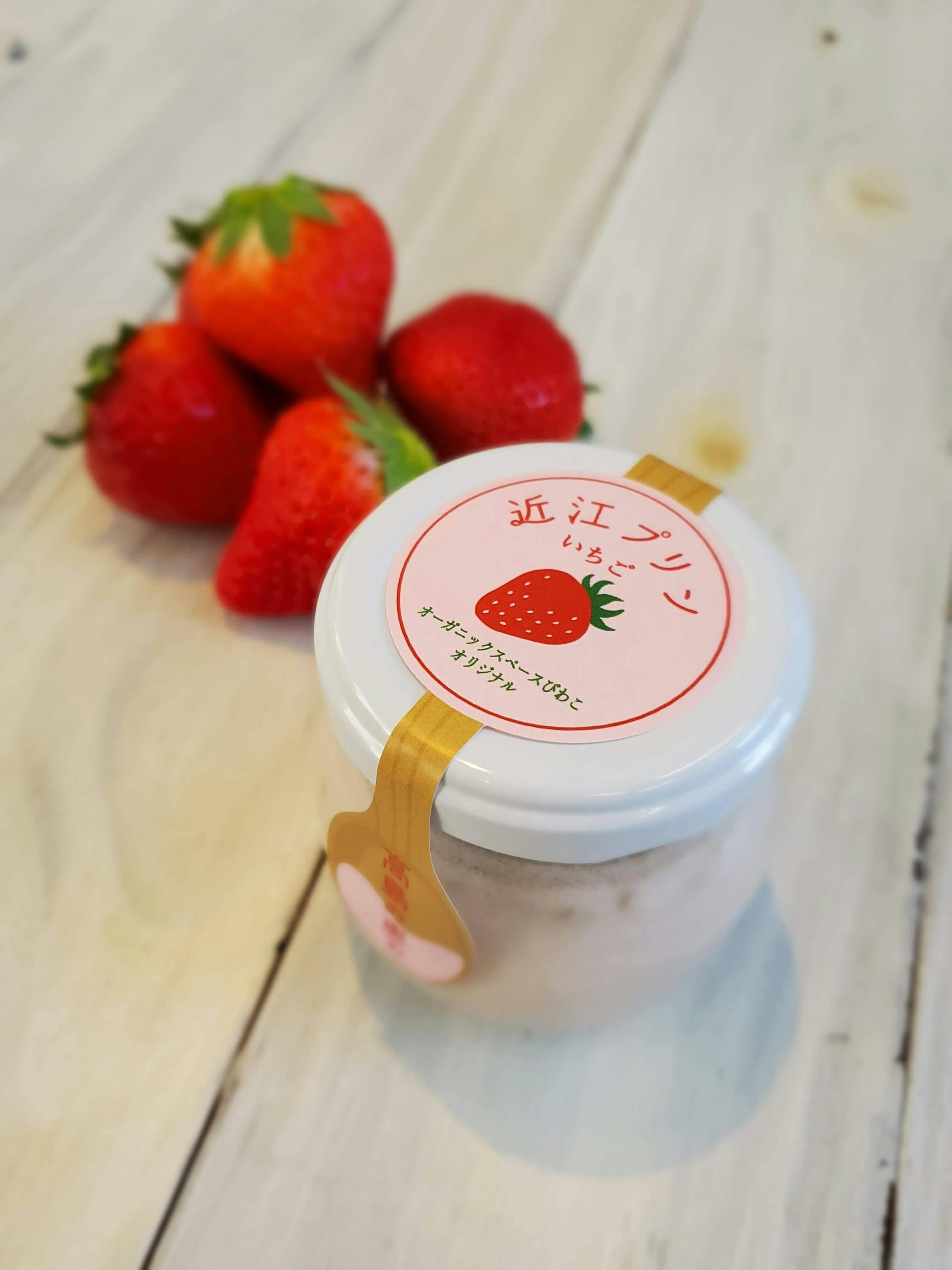 そして今回の当店だけのオリジナル新商品【近江プリンいちご】(定価400円予定)