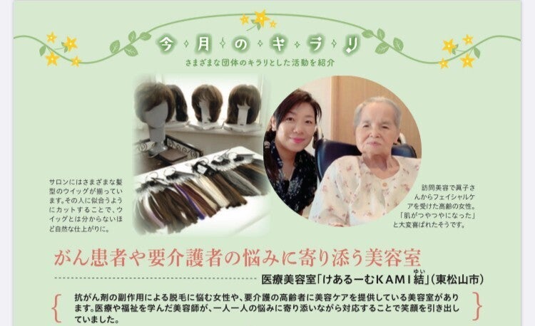 元気になり、美容師という経験を生かし美容を通して人を元気にできないか?と考え、美容療法のボランティアをしたりアピアランスケア教室を開催し、人とのつながりを大事にしてきました。「病気へのケアは地域のつながりで支えられるのではないか?」とうひとつの軸ができた事で、つながりを作り支えられる社会作りをこれからもしていきたいと思います。