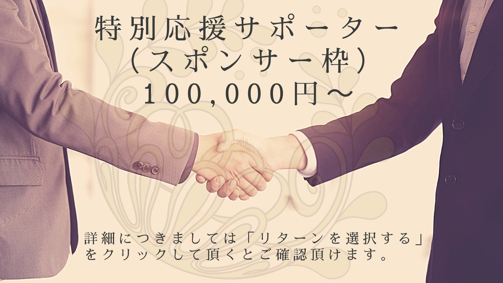 通常のスポンサー枠ではなく、プロジェクト展開において全ての応援サポーターとしてスポンサーとなって頂く枠です。