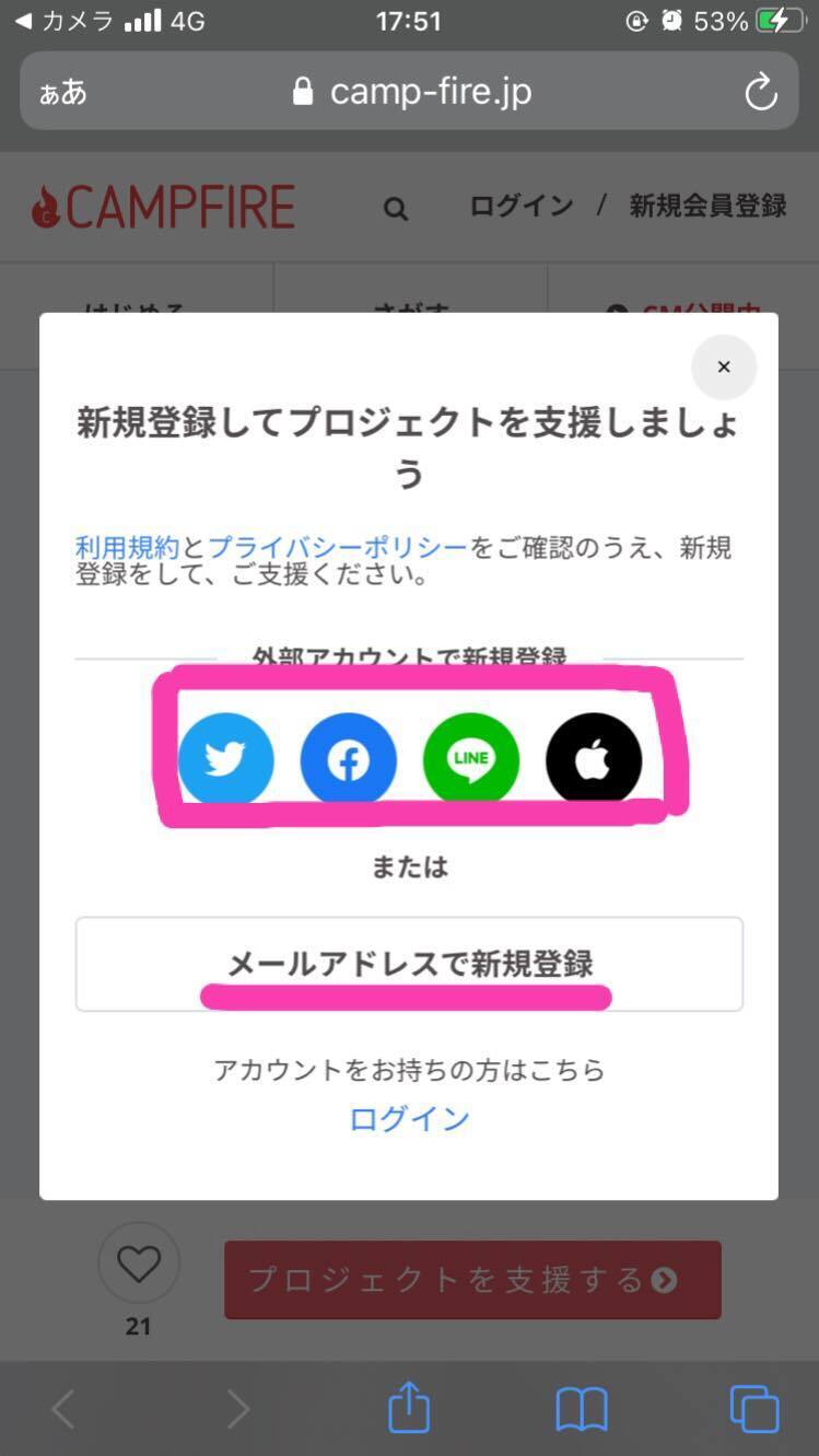 →お持ちのアカウント、またはメールにて新規登録します。