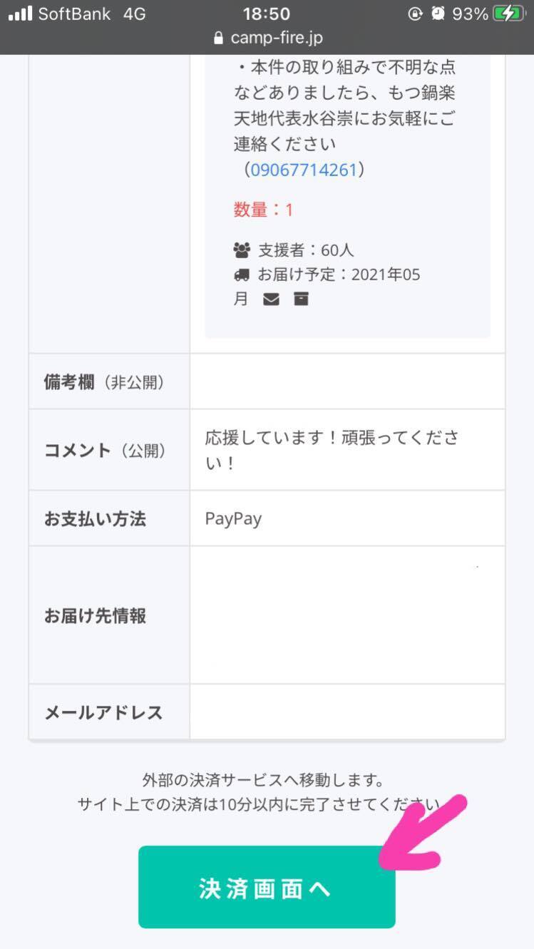 →内容を確認し「決済画面へ」をクリック