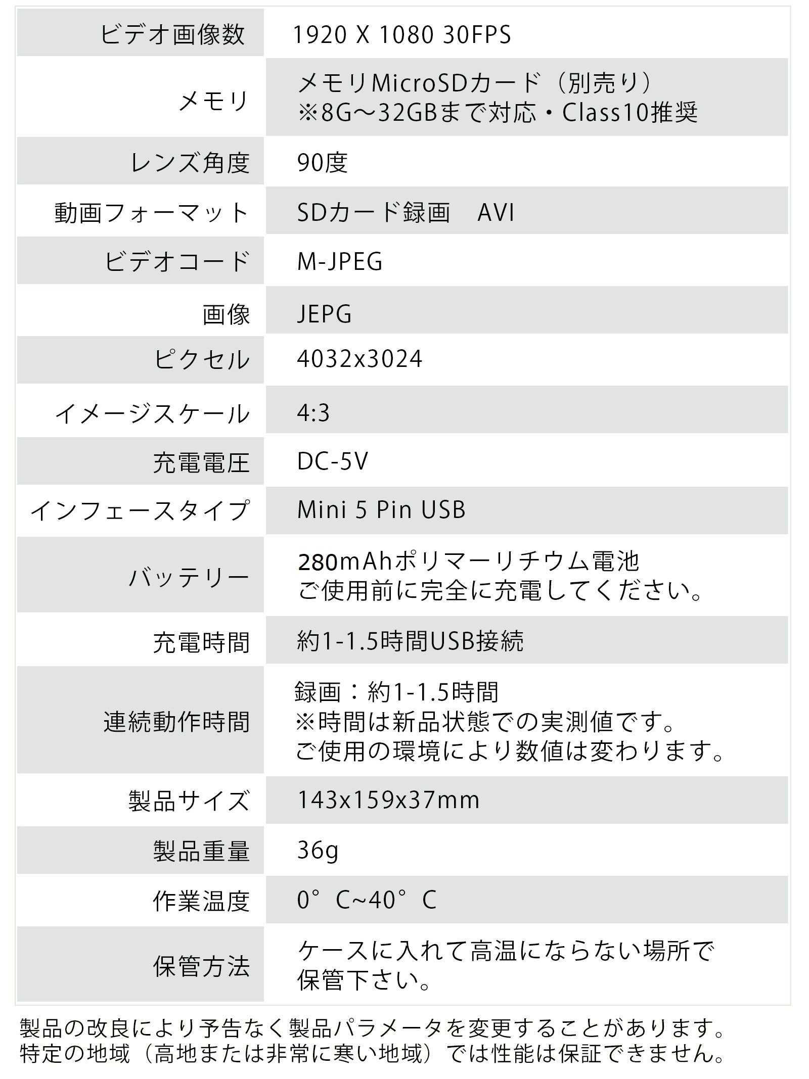 32GBまでマイクロSDカード(別売り)が使用可能なため、長時間の撮影が可能です。