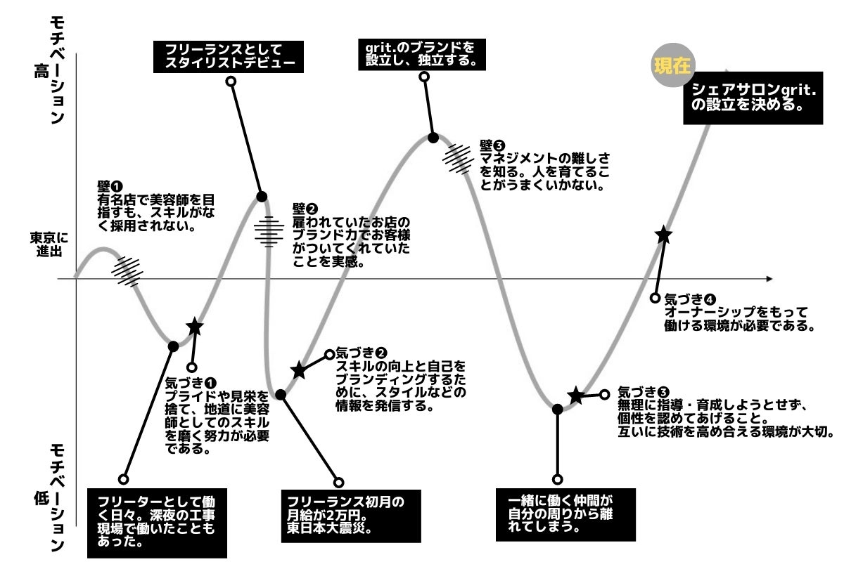 そのような生活の中で、美容師として技術を高めるためには、有名店で働くことよりも、現場で経験を積むことが必要だと考えるようになりました。プライドや見栄を捨てて、努力してやろう、絶対にかっこいい美容師になってやろうと覚悟を決めた出来事でもありました。初めて経験する大きな挫折の体験と、そこから得た確かな決心をもって郡山に帰ってきました。