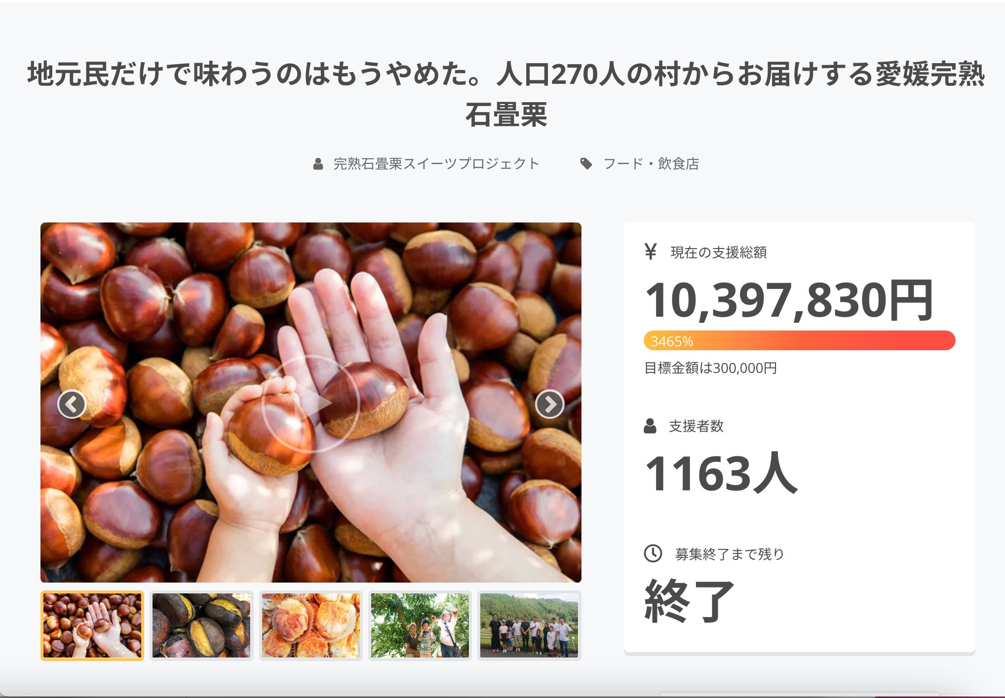 完熟石畳栗は過去2回のプロジェクトを見ると、栗が大好き!、食へのこだわり、本物を愛し地域を愛する方、大人の50代の方に最も多くご支援いただいております。