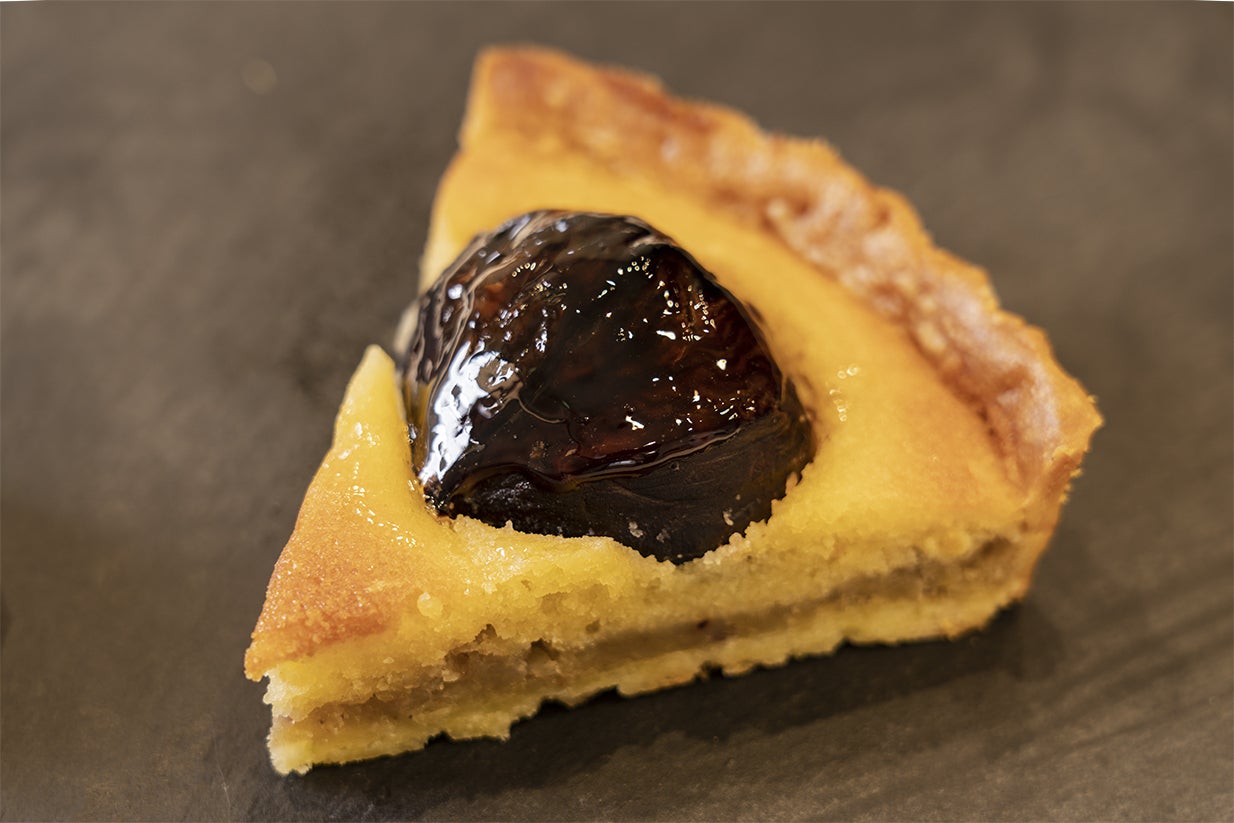今回のスイーツは、完熟石畳栗の本来の美味しさをそのままに表現できるタルトをチョイス。フォルムの美しさ、美味しさをそのままに完熟石畳栗タルトをお届けします。