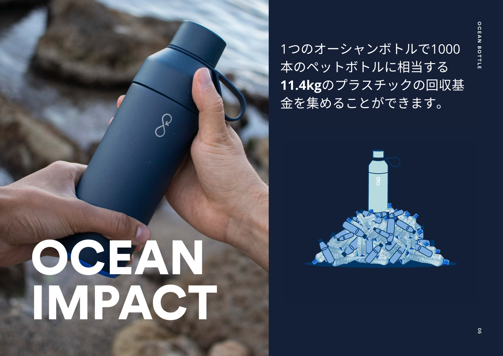 オーシャンボトルを1つご購入いただくと、1000本ものペットボトル - 海洋プラスチックゴミを回収する基金を集めることができます。また、ボトルはたった1つで繰り返し使用可能なボトルの最高の機能を兼ね備えています。
