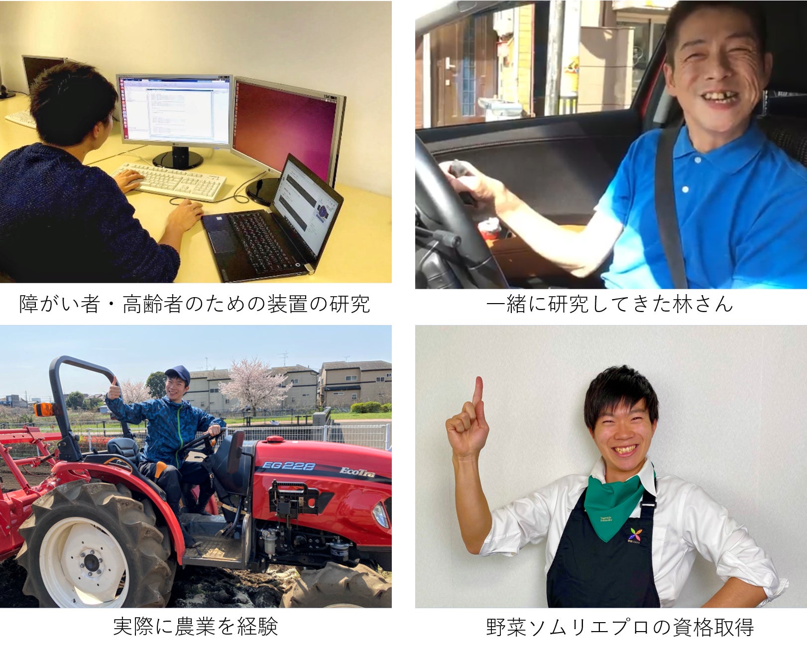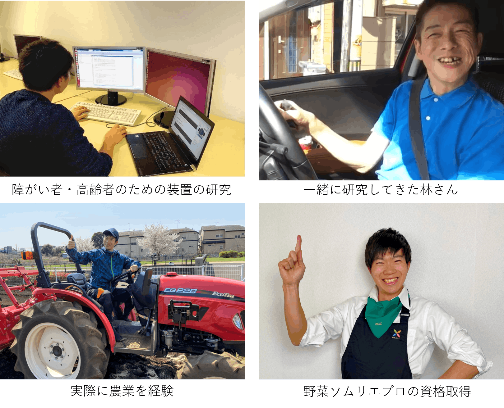 自分の母親の足が悪かったことや祖父母と暮らしていたこともあり、高専時代に福祉や高齢者のためのロボットに興味を持ちました。大学では実際に障がい者や高齢者を対象にしたロボットの研究をしていました。