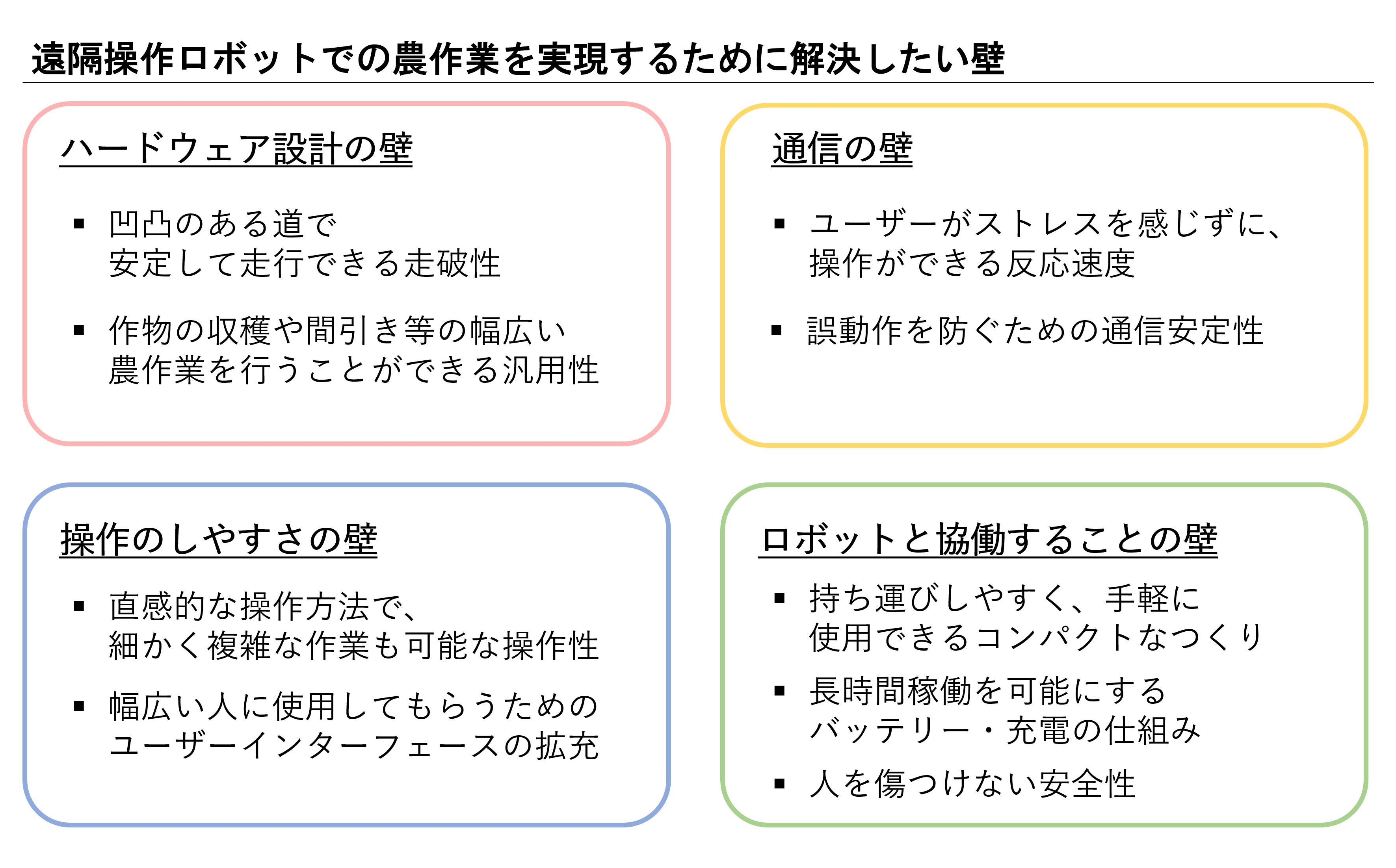 遠隔操作ロボットでの農作業を実現するために解決したい壁