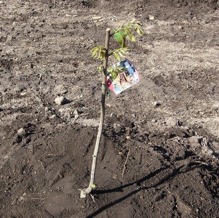 <数年後には太い幹となり沢山の毬がつき実がとれますように>