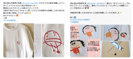 クレヨンパラダイスは「子どもが描いたイラストを世界でたった1つの刺繍Tシャツにする」サービス。