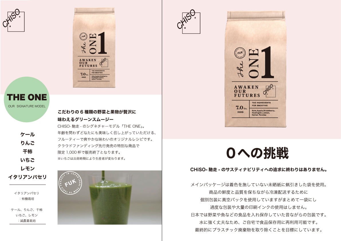2021/09/26 22:57CHISO-馳走-スムージー発売開始のご挨拶こちらでのご報告が遅くなりましたが、CHISO-馳走-スムージーは2021年9月5日に発売開始いたしました。発売開始にあたり、クラウドファンディングでもリターンで送らせていただいた「THE ONE」に付け加えて新商品「NINJIN」をリリースいたしました。こちらの2つを併せて定期便と単品をECサイトのみで取り扱っております。ECサイト:https://chiso.store.suriashi.com/繋がらない場合:https://chiso2020.theshop.jp/ひとえに、クラウドファンディングでご支援いただいた皆様のおかげです。ありがとうございます。CHISO-馳走-オンライントークセッションのご案内【9/28 20:00~ 】CHISO ONLINE TALK SESSION VOL.01"循環型農業で土と共に生きる"CHISO-馳走-がお話を聞いてみたい方をゲストにお招きして不定期でお送りします、オンライントークセッション。1回目は福岡県久山町にて循環型農業に取り組みながら社会問題を解決するピザ窯&ジェラートキッチンカーを運営し、後進育成の為専門学校で教鞭も取っているなど、大注目される里山サポリ:城戸勇也氏をお招きします。CHISO-馳走-の冷凍スムージーに使用しているイタリアンパセリは城戸さんが土づくりからこだわり手間暇かけて育てた有機栽培のものです。城戸さんが農業を始めたきっかけから、現在取り組んでいること、将来の展望などを聞きながら時間の許す限り、食や農の理解を深めていきます。チケット購入サイト https://t.livepocket.jp/e/chisotalksession今後とも応援よろしくお願いいたします。CHISO-馳走-チーム 拝 もっと見る