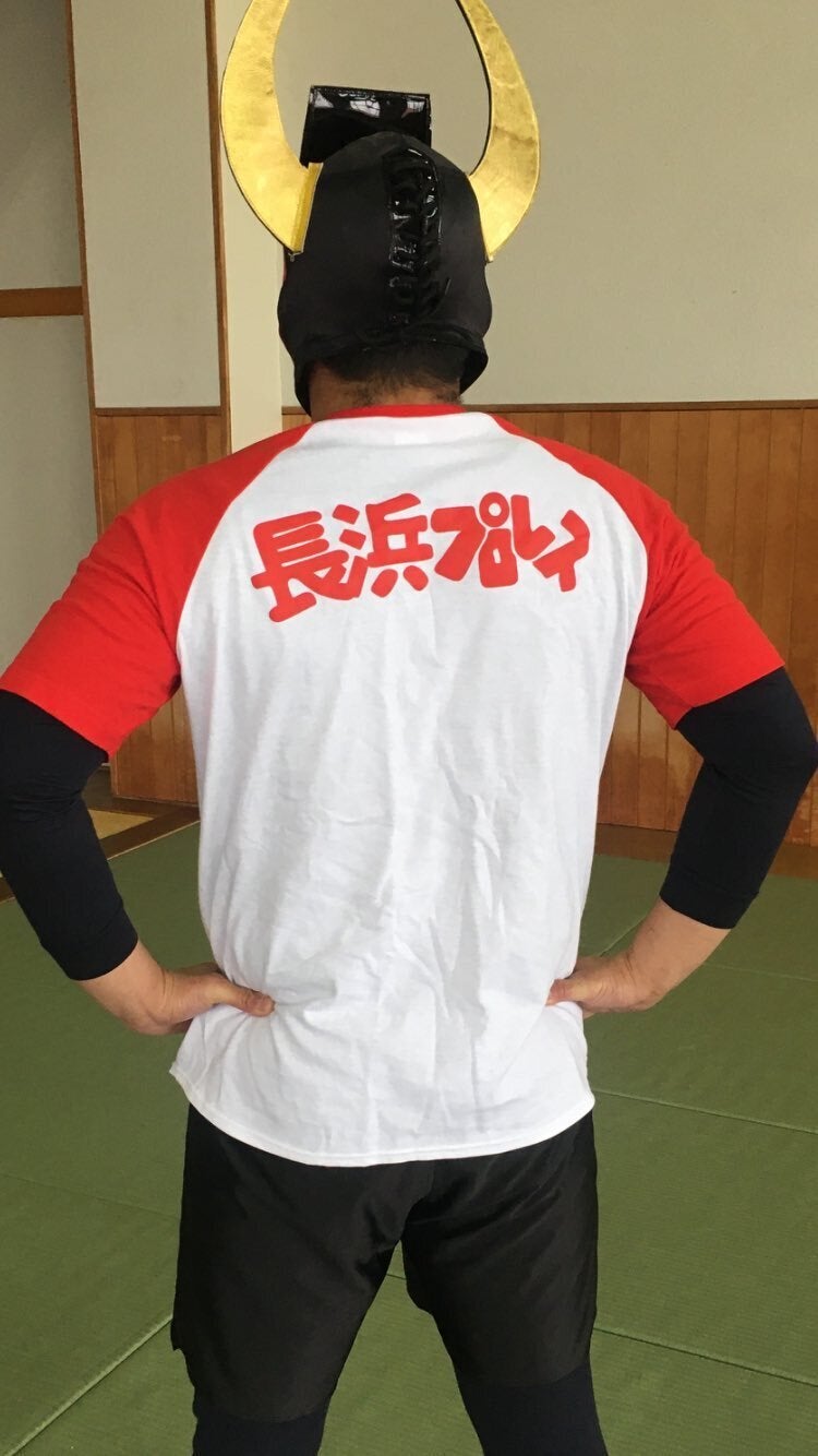 長浜プロレスオリジナルTシャツです。1種類赤白ラグランのみ。
