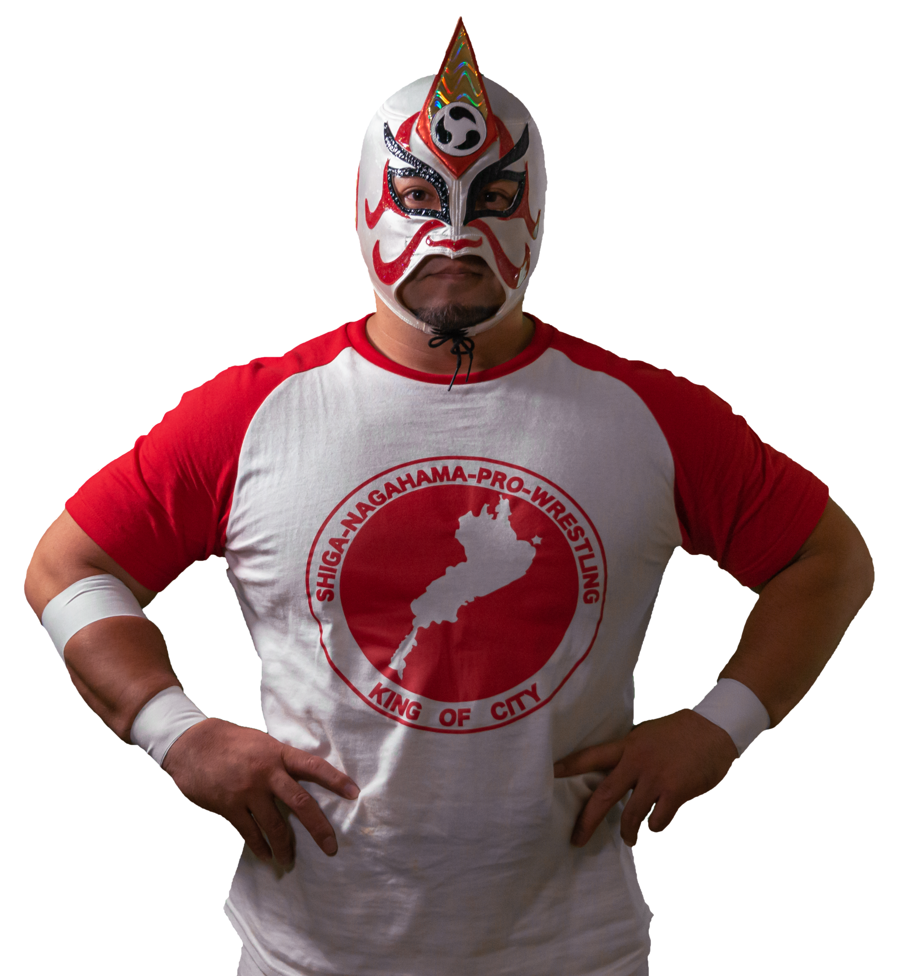 父親の影響でプロレスにのめり込みました。猪木が負けたら泣いていた小学時代。夢はプロレスラーでチャンピオン!しかし、当時は厳しい体格基準がありメジャー団体の試験は受けられず基準のない団体でプロレスラーとしての道を進みます。プロレスから離れることもありましたが『自分の大好きなプロレスを通して大好きな長浜を盛り上げたい!!』と決心し活動し始めました。