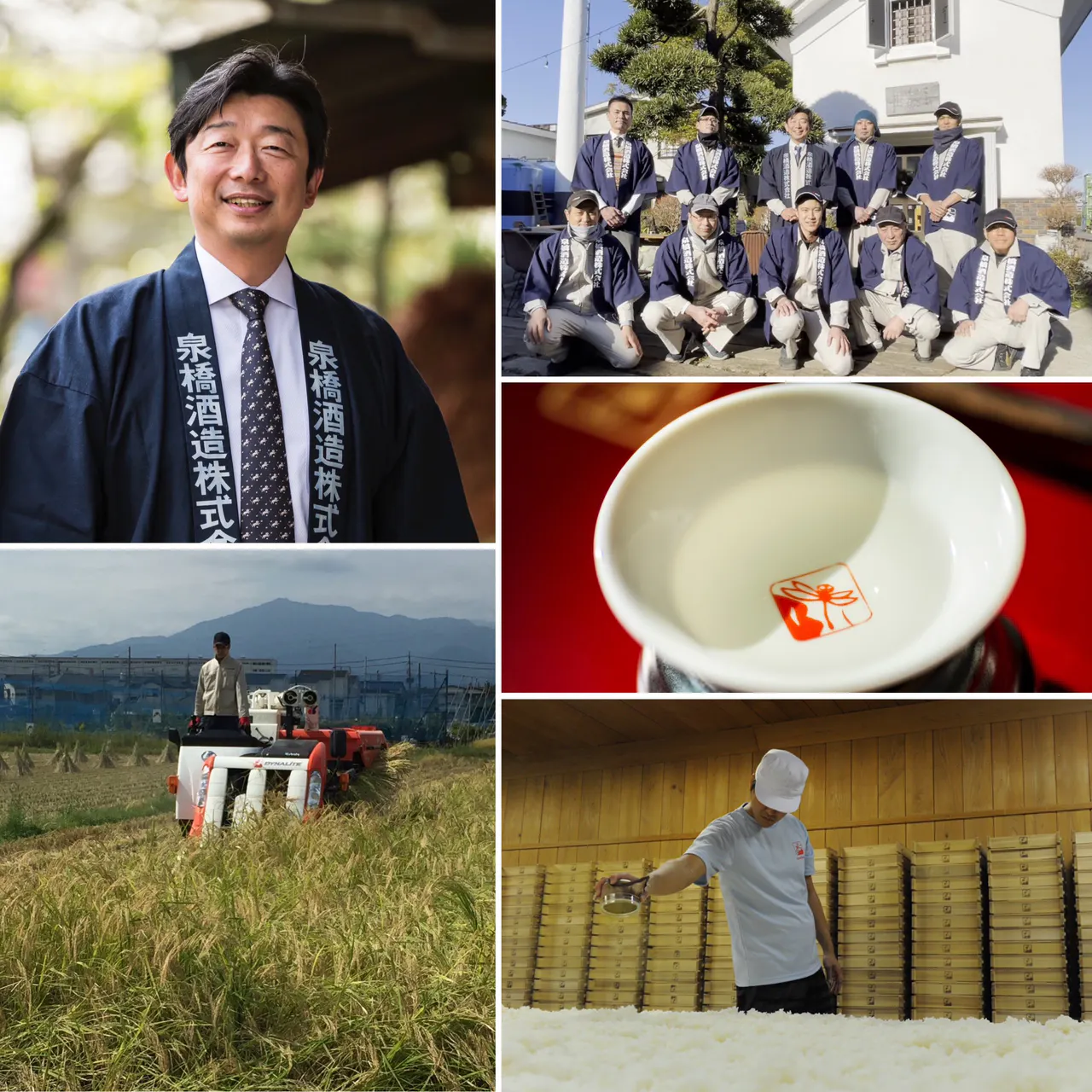 1857年創業。創業以来ずっと海老名市に蔵を構え、地元で「山田錦」「雄町」「楽風舞」「神力」など酒米の栽培を行っている。トレードマークは「とんぼ」。とんぼは田んぼの生き物を代表するもので、関連するすべての生物や環境などに配慮した農業・酒造りを目指すことを表している。すべてのお酒は「純米造り」、生酛仕込みにも力を入れている。 また、蔵元直営のレストラン「蔵元佳肴いづみ橋」ではいづみ橋のお酒と地元素材を生かした料理とのペアリングが楽しめる。