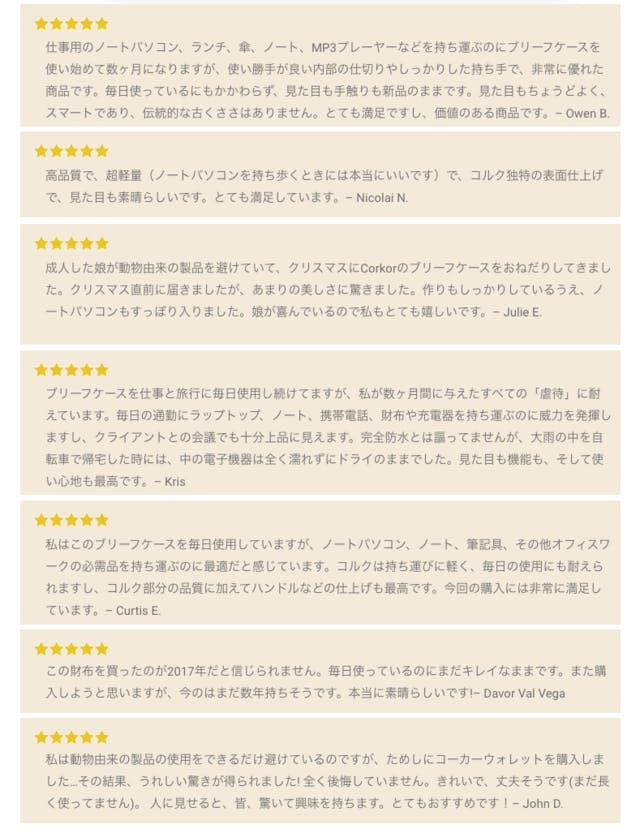 プレミアムコルク製品を適正な価格で提供し、商品、サービス内容には高い評価を得ています。