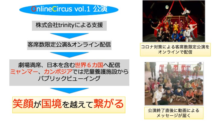この二つのオンラインのショーを通して、視聴いただく皆さま、および、現地テントに足をお運びいただく皆さまとともに、このコロナ禍で夢を掴もうとするパフォーマーを応援し、パフォーマーが世界に羽ばたいていくという夢を皆さんで共有し、その演技を観て、みなさんに笑顔が広がったら幸いです。夢を掴むという想いが一つとなり、手と手を本当に繋ぎ、一つの輪になれる日を心待ちにして、この企画を成功させられるよう全力で取り組んでまいります。どうぞ応援、ご支援のほどよろしくお願いいたします。